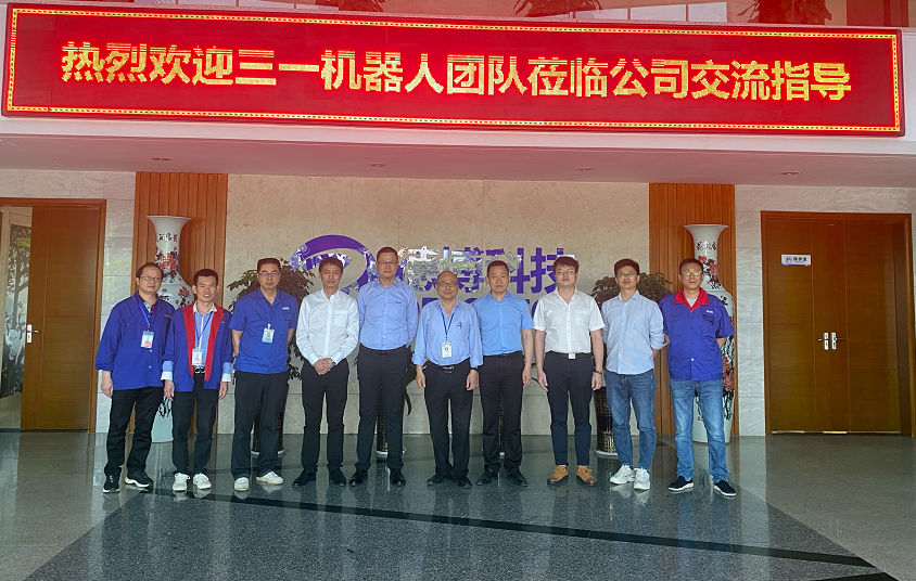 5月5日上午,三一机器人公司营销服务总监胡柱等一行5人前来公司进行智能制造数字化,信息化建设项目进行深度调研;公司副董事长吴学文等高层领导热情接待,并与技术专家进行了深入的座谈和现场交流,三一团队通过交流和现场沟通,了解收集相关信息和公司的需求。
